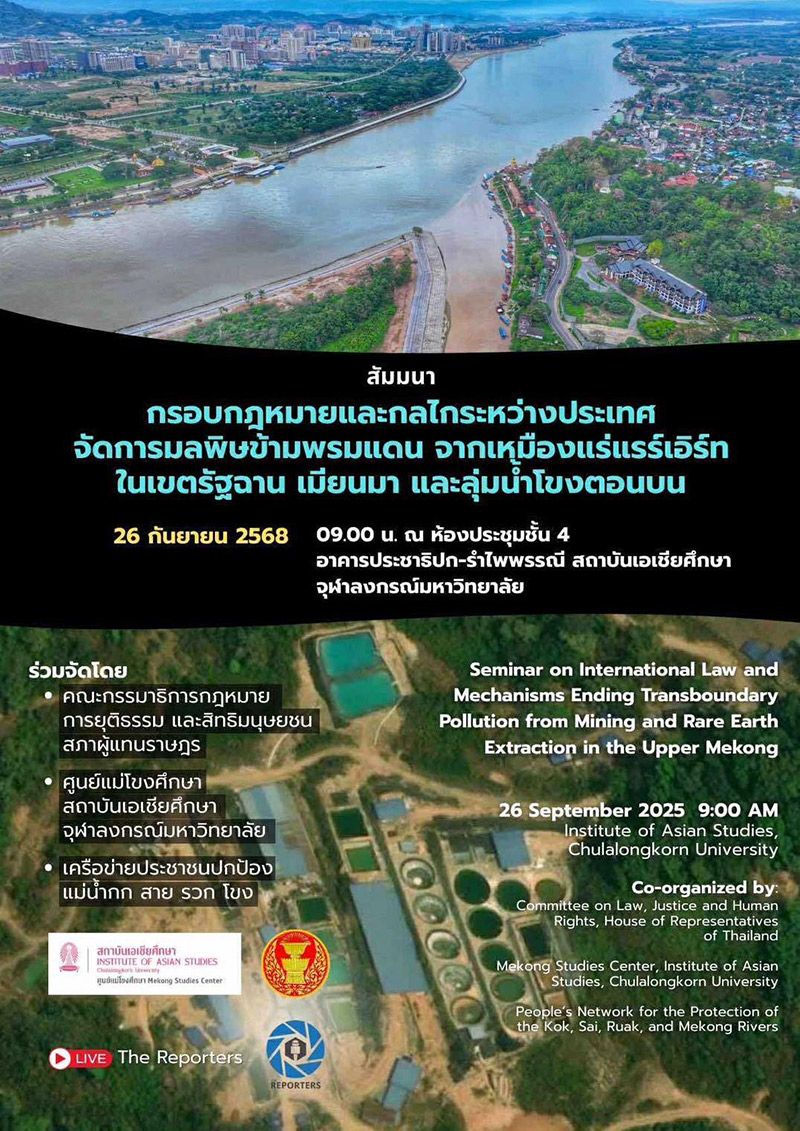 เวทีวิชาการเพื่อวิเคราะห์กรอบกฎหมายและกลไกระดับนานาชาติ ในการจัดการผลกระทบจากการทำเหมืองแร่แรร์เอิร์ธในรัฐฉานและเมียนมา