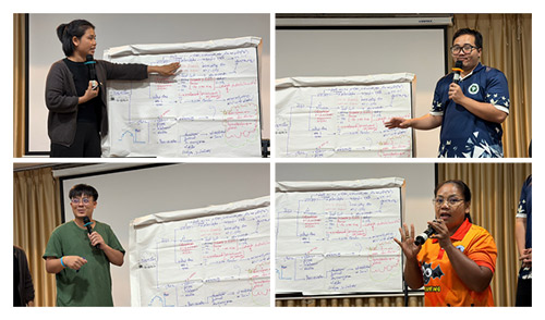 10.30 – 12.00 น. แบ่งกลุ่ม จัดทำแผนที่ความเสี่ยงและออกแบบการเฝ้าระวังความเสี่ยง ของแต่ละชุมชน