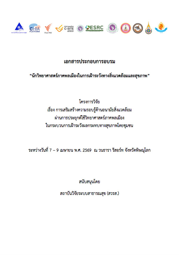 เอกสารประกอบการอบรม “นักวิทยาศาสตร์ภาคพลเมืองในการเฝ้าระวังทางสิ่งแวดล้อมและสุขภาพ”